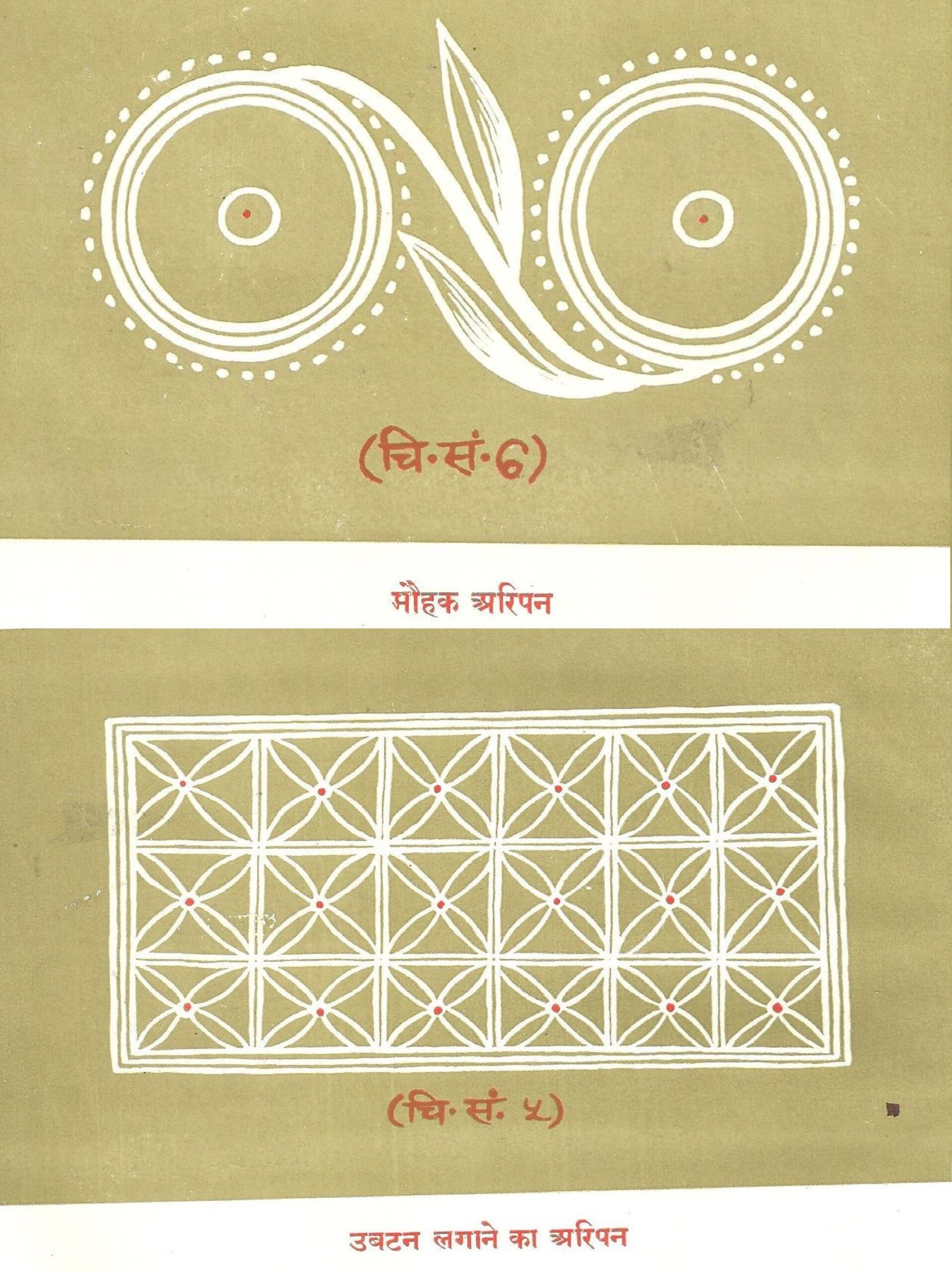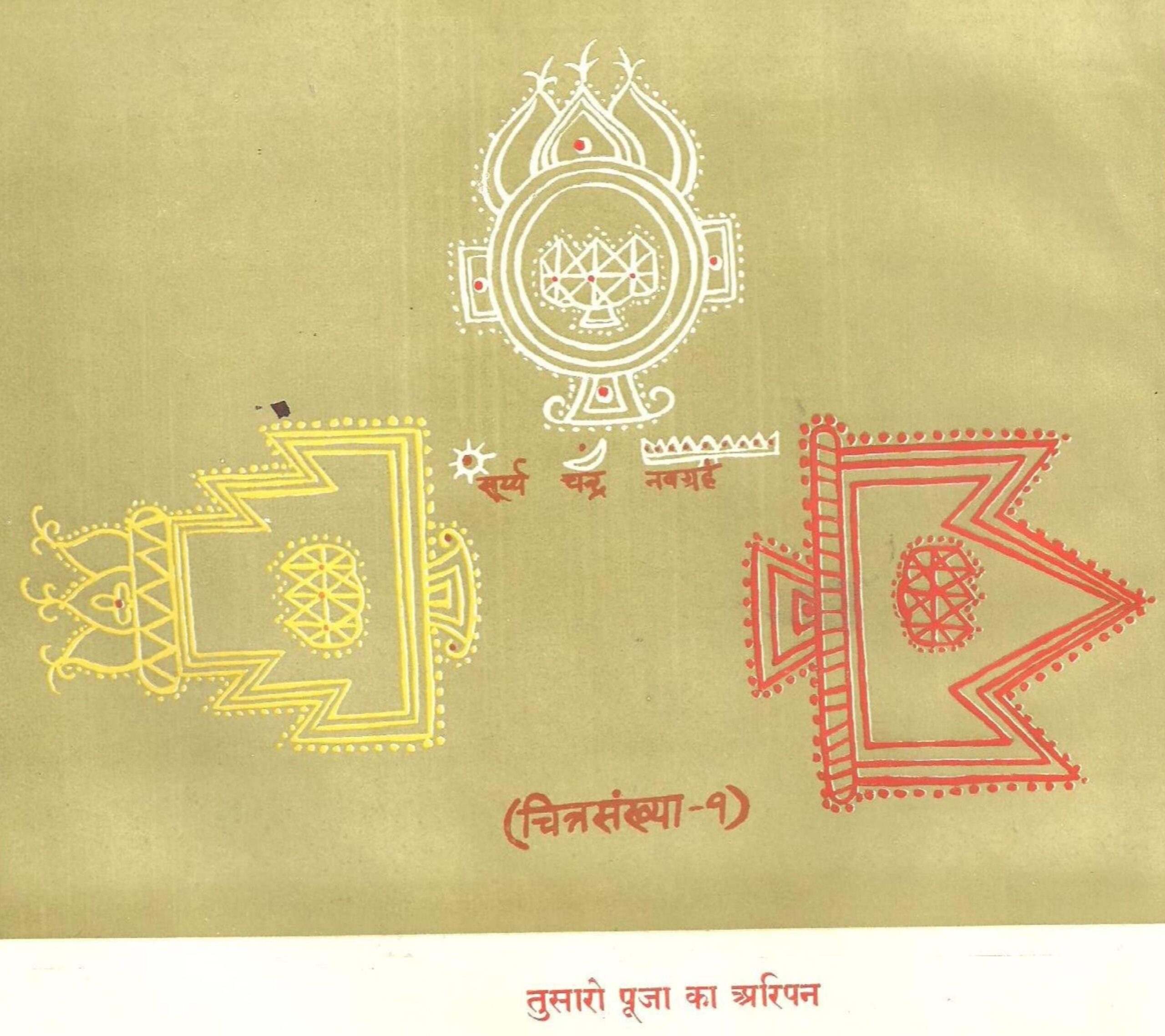 प्रतीक चिन्हों की व्यवस्था की चर्चा सबसे पहले नैना जोगिन से करते हैं। यह माना जाता है कि नैना जोगिन का चित्रण बौद्ध धर्म के प्रभाव में शुरू हुआ। मिथिला के गृहस्थ परिवारों पर जब बौद्ध धर्म का प्रभाव बढ़ने लगा, तब उसे निष्प्रभावी बनाने हेतु नैना जोगिन के चित्रण की परंपरा शुरू हुई। इसके लिए चारों दिशाओं को तांत्रिक विधि से साधा जाता था और कोबर घर को उसके चारों कोणों में नैना जोगिन का चित्रण कर बांधा जाता था। नैना जोगिन की चित्रण की परंपरा आज भी जारी है, इस वजह से कि वह ऐसी किसी भी बुरी शक्ति, जो नव-दंपत्तियों को गृहस्थ आश्रम से दूर ले जाती हो, उसे निष्प्रभावी कर नव-दंपत्तियों में परस्पर आसक्ति और सम्मोहन भाव को बनाये रखेगी, ताकि वे सफल गृहस्थ बने रहें।