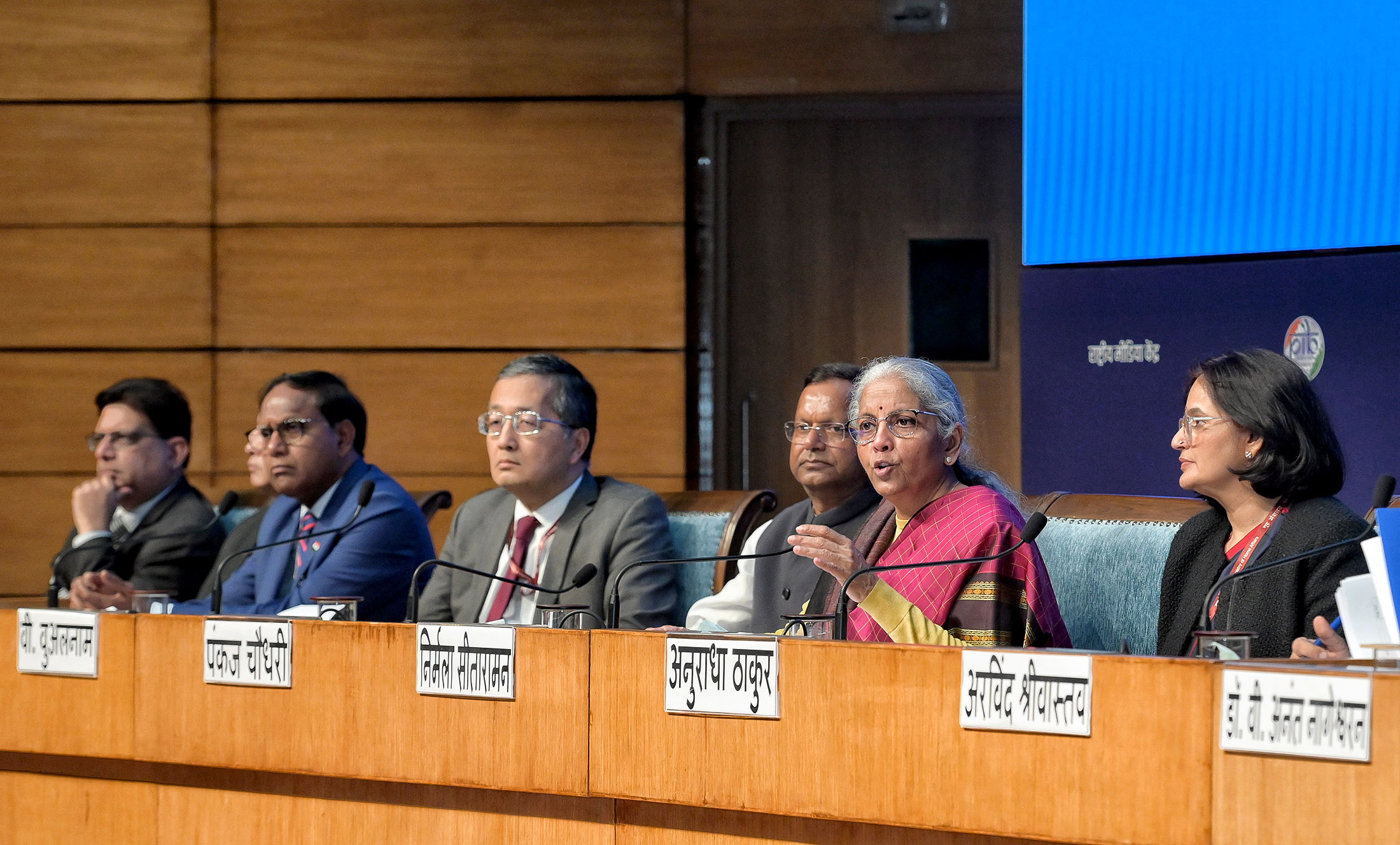 केंद्रीय वित्त और कॉर्पोरेट मामलों की मंत्री श्रीमती निर्मला सीतारमण ने 01 फरवरी, 2026 को नई दिल्ली में नेशनल मीडिया सेंटर में बजट के बाद एक प्रेस कॉन्फ्रेंस को संबोधित किया।