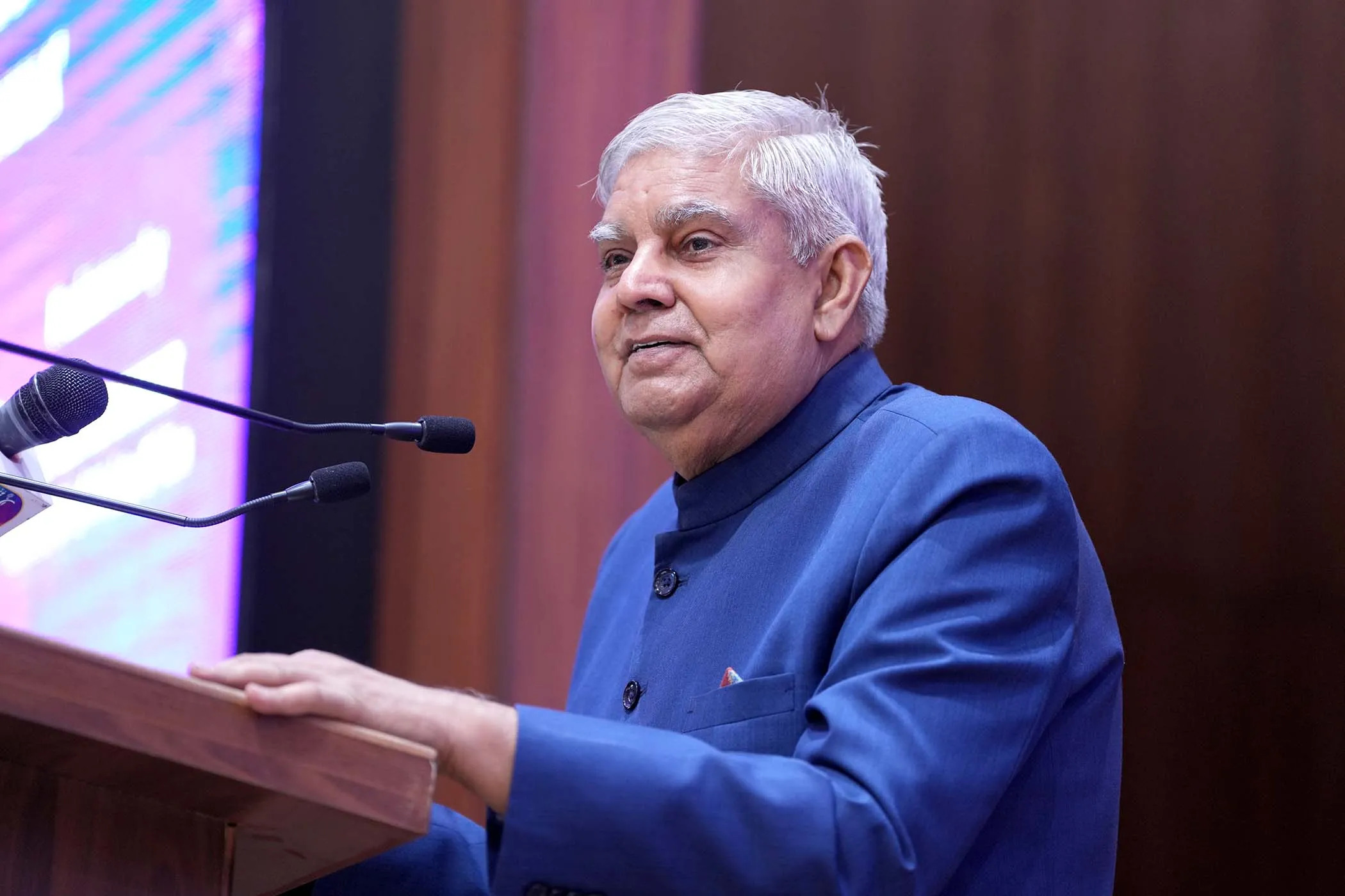 धनखड़ ने कहा, “एक समृद्ध लोकतंत्र निरंतर कटुता का वातावरण सहन नहीं कर सकता… जब आप राजनीतिक कटुता, राजनीतिक वातावरण को अलग दिशा में पाते हैं, तो आपका मन विचलित हो जाता होगा। मैं देश के सभी लोगों से आग्रह करता हूँ कि राजनीतिक तापमान को कम किया जाए। राजनीति टकराव नहीं है, राजनीति कभी भी एकतरफा नहीं हो सकती। अलग-अलग राजनीतिक विचार प्रक्रियाएँ होंगी, लेकिन राजनीति का अर्थ है एक ही लक्ष्य को प्राप्त करना, लेकिन किसी न किसी तरह अलग-अलग माध्यमओं से।”