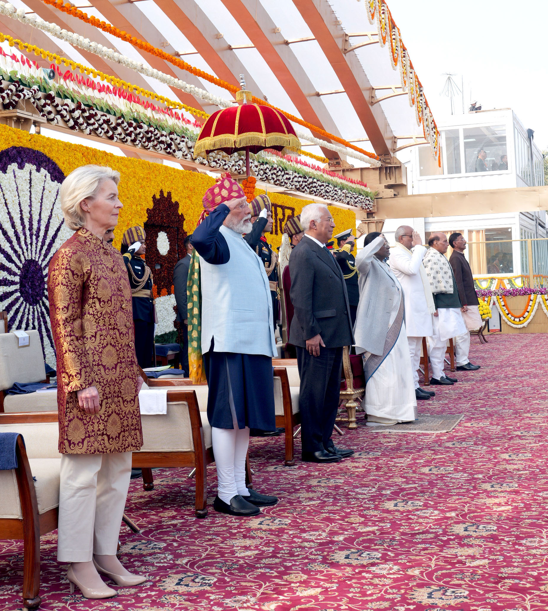 आइये वापस कर्तव्य पथ पर चलते हैं। विगत 26 जनवरी को भारत गणराज्य अपना 77वां गणतंत्र दिवस मनाया। राष्ट्रपति श्रीमती द्रौपदी मुर्मू कर्तव्य पथ पर ऐतिहासिक समारोह का नेतृत्व की । यूरोपीय परिषद के अध्यक्ष श्री एंटोनियो कोस्टा और यूरोपीय आयोग की अध्यक्ष सुश्री उर्सुला वॉन डेर लेयेन इस महत्वपूर्ण अवसर पर मुख्य अतिथि थे। कुल 90-मिनट के इस कार्यक्रम में राष्ट्रपति भवन से लेकर राष्ट्रीय युद्ध स्मारक तक फैला कर्तव्य पथ, राष्ट्रीय गीत वंदे मातरम के 150 साल, भारत की अभूतपूर्व प्रगति, मजबूत सैन्य शक्ति, इसकी समृद्ध सांस्कृतिक विविधता और जीवन के सभी क्षेत्रों के लोगों की भागीदारी का एक अविस्मरणीय संगम पेश किया। प्रधानमंत्री श्री नरेंद्र मोदी के राष्ट्रीय युद्ध स्मारक पर आये जहाँ वे शहीदों को पुष्पांजलि अर्पित करके राष्ट्र की ओर से श्रद्धांजलि दिए। तत्पश्चात वे परेड देखने के लिए कर्तव्य पथ पर सलामी मंच पर पहुंचे।