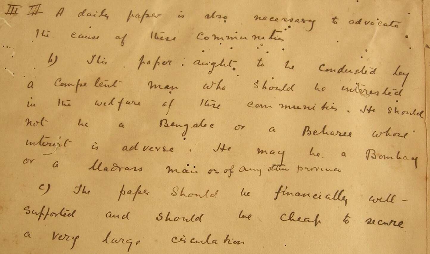 महाराजा रामेश्वर सिंह तत्कालीन स्थिति के मद्दे नजर लिखते हैं: “बिहार में ब्राह्मण, भूमिहार, राजपूत के अतिरिक्त अन्य जाति-समुदाय के लोगों कल्याणार्थ, उनके लाभार्थ, ऐसे समुदाय की बातों को उठाने के लिए, आवाज देने के लिए दैनिक अखबार का प्रकाशन अति आवश्यक है। इस अखबार का संचालन एक ऐसे दक्ष व्यक्ति द्वारा हो जो वास्तविक रूप से इस समुदाय के कल्याण और विकास में अभिरुचि रखते हैं । इस अखबार को वित्तीय रूप से पूरा संरक्षण हो, साथ ही, अखबार की कीमत बहुत सस्ती हो ताकि इसका प्रसार अधिक से अधिक हो।”