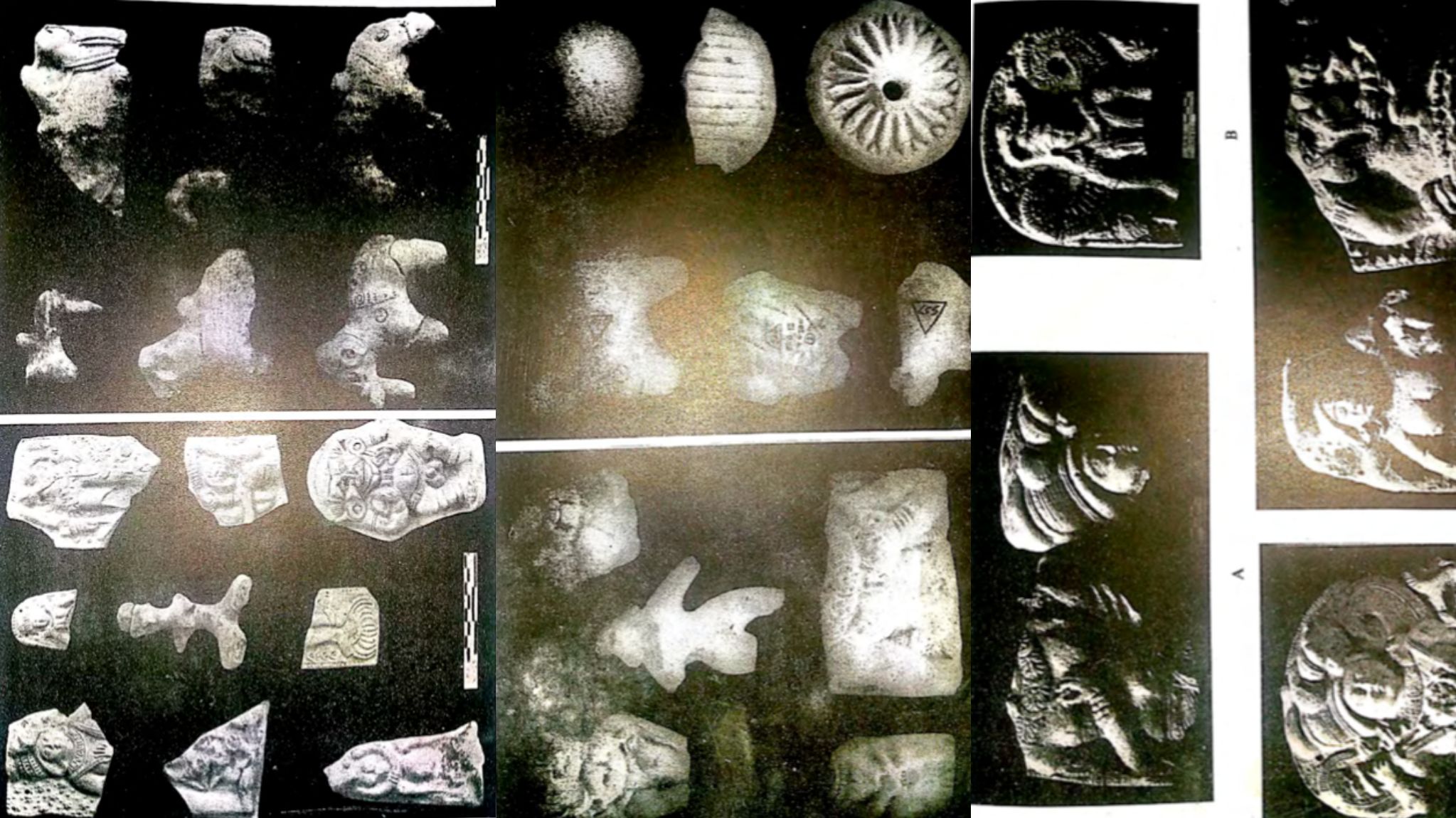 पशुओं एवं जानवरों की मूर्तियों, जिसमें अधिकांशतः सांड़ों एवं भेड़ों की मूर्तियां मिलती हैं। इससे तत्कालीन कृषि व्यवस्था तथा पशुपालन कार्य प्रतिबिम्बित होता है। इन पुरावशेषों के अलावा मिट्टी की पकी हुई गोलियों एवं मनके आदि मिलते है जिसमें ऐसा कहा जाता है कि बड़े गोलियों का प्रयोग युद्ध एवं बड़े जानवरों के शिकार के लिए किया जाता था जबकि छोटे गोलियों का प्रयोग सम्भवतः छोटी पक्षियों एवं छोटे जानवरों को चोट पहुँचाने के लिए किया जाता था। मिट्टी की पकी हुई मनके का प्रयोग सम्भवतः पशुओं को माला बनाकर पहनाने में किया जाता था। हड्डियों के कीलों का प्रयोग जानवरों का शिकार करने तथा मछलियों को मारने में किया जाता था।