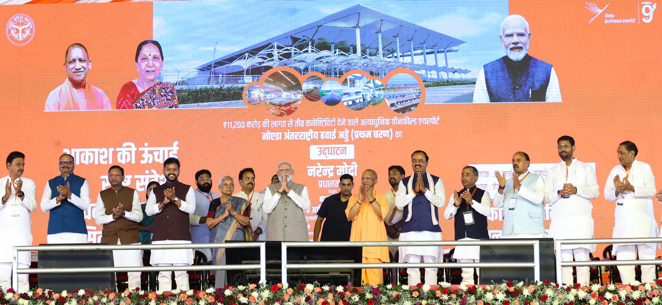जेवर (नोएडा, उत्तर प्रदेश) : प्रधानमंत्री नरेंद्र मोदी, योगी आदित्यनाथ और अन्य राजनेताओं के साथ-साथ हज़ारों लोगों की उपस्थिति में नोएडा अंतरराष्ट्रीय हवाई अड्डा यानी जेवर हवाई अड्डा राष्ट्र को समर्पित किया और कहा कि आज से ‘विकसित उत्तर प्रदेश, विकसित भारत अभियान’ में एक नया अध्याय शुरू हो रहा है। भारत का सबसे बड़ा राज्य अब अंतरराष्ट्रीय विमान पत्तनों की सबसे अधिक संख्या वाले राज्यों में से एक बन गया है। उन्होंने यह भी कहा कि “यह वही राज्य है जिसने मुझे अपना प्रतिनिधि चुना और सांसद बनाया, और अब इसकी पहचान इस शानदार विमान पत्तन से जुड़ गई है।” साथ ही, यह भी दोहराया कि उन्हें दोहरी खुशी है, पहली इस विमान पत्तन की नींव रखने और अब इसका उद्घाटन करने पर, और दूसरी इस भव्य विमान पत्तन का नाम उत्तर प्रदेश से जुड़ने पर।